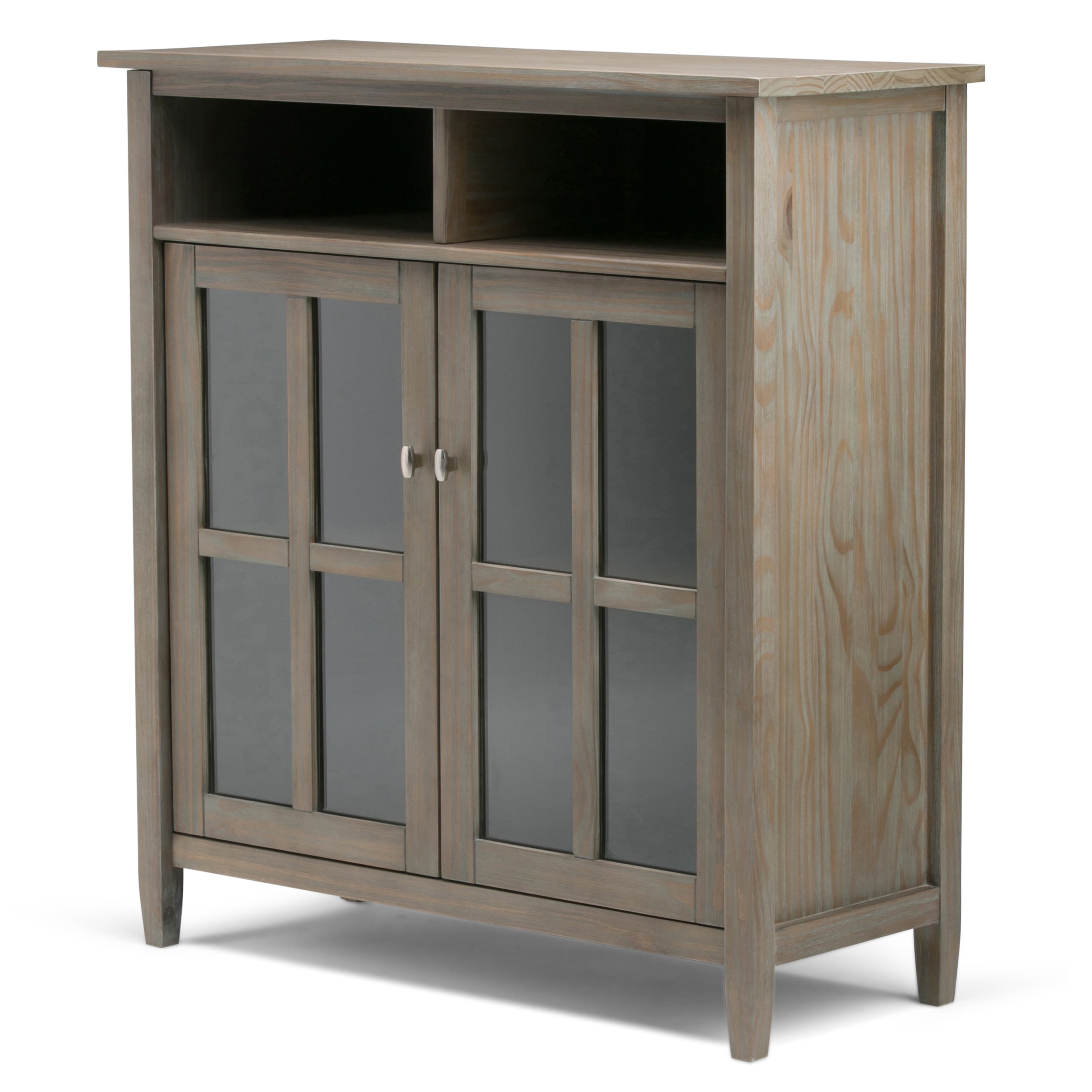 Simplihome bedford solid wood 32 inch wide rustic low storage media cabinet in farmhouse grey, with 2 tempered glass doors, 2 adjustable shelves. 4.5 out of 5 stars. Keep your casa clutter free with modern tv stands and media consoles. We offer a broad range of entertainment cabinet and media console looks, from classic to midcentury to modern and beyond. Ainsworth cocoa 64 media center and 2 towers with glass/wood doors.